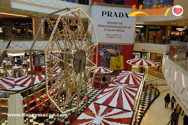 Prada Wonderland以典型的二十世紀早期遊樂場為主要視覺元素,位於「時尚匯」購物中心明珠大堂中央的Prada Wonderwheel,重新演繹經典的大型摩天輪,座艙的設計就仿如巨型購物袋,盛載著Prada極具代表性的產品,蜿蜒地轉動並展現在賓客眼前;設在期間限定店兩端的Prada Carousel旋轉鞦韆,以充滿活力的方式展示男女系列單品。